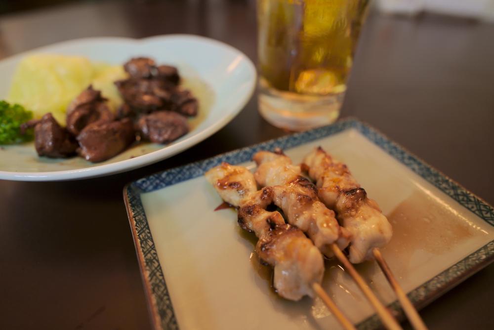Start with tender skewered chicken (yakitori) (3 sticks for 340 yen), which is a standard item on the menu. Or try tough yakitori (3 sticks for 330 yen).