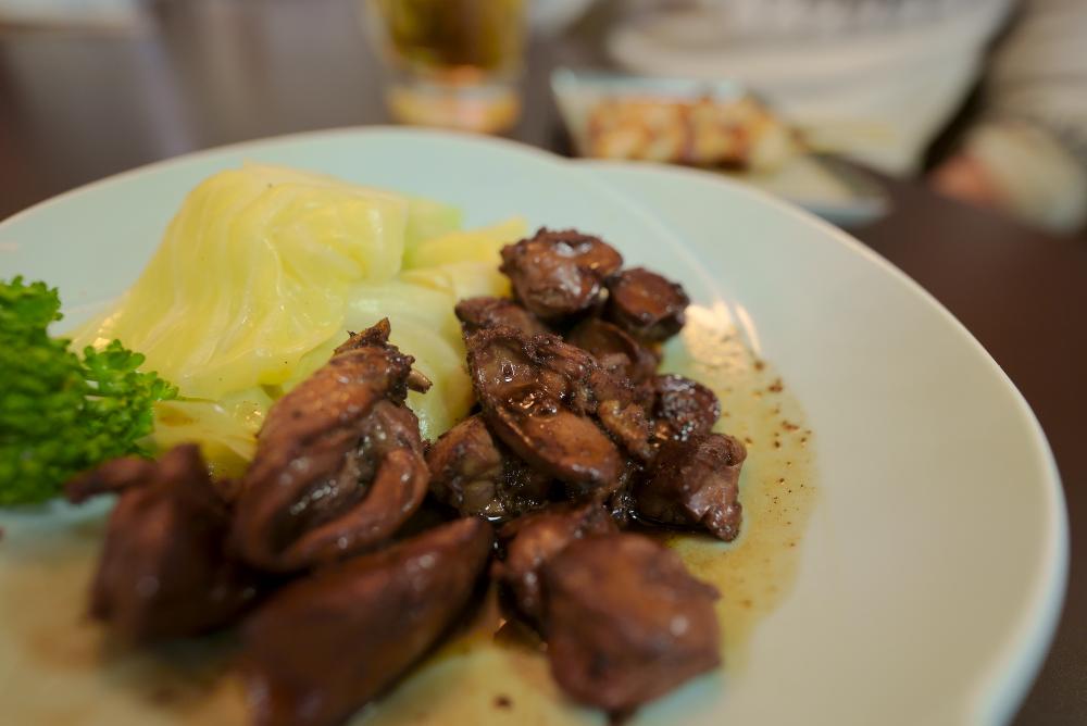 Another popular dish is stir-fried sweet and spicy liver (kimoyaki, 490yen), which has a mild flavor and a sweet and spicy sauce.