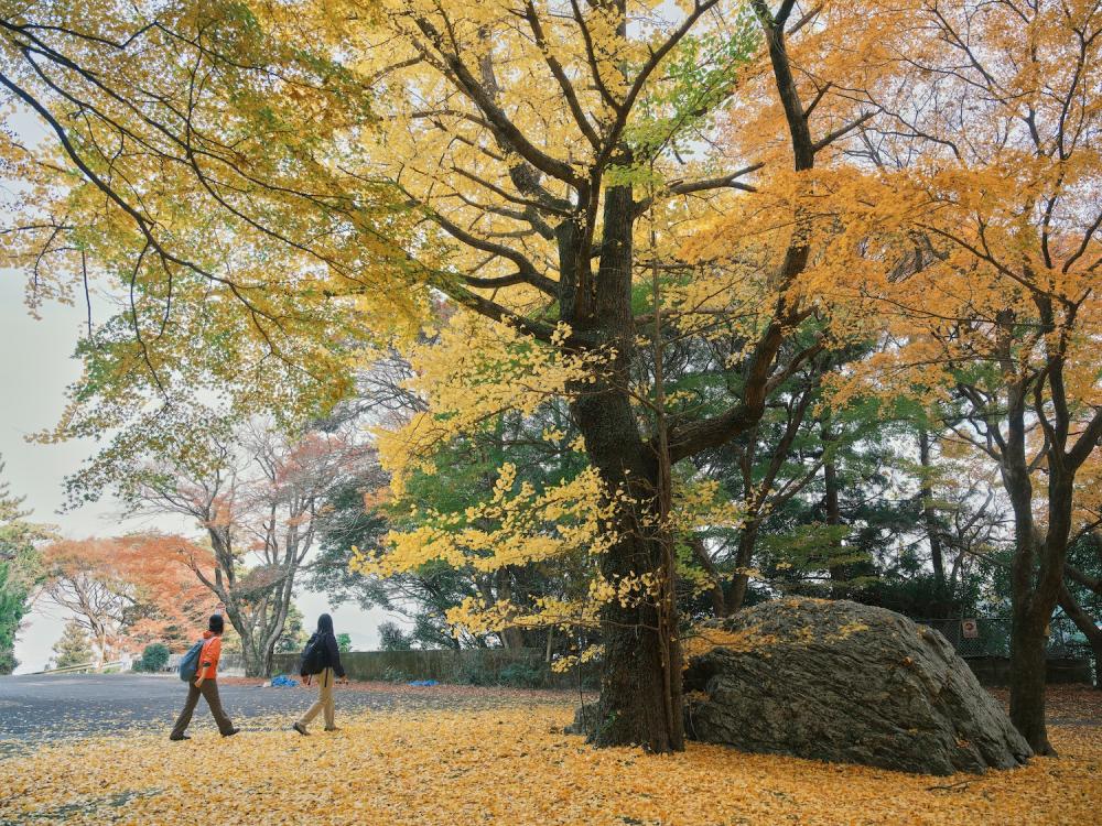 The destination is a large ginkgo tree located in the parking lot of Nyoirinji Temple. The entire area is covered in a golden carpet that will help you relax and unwind after your journey.