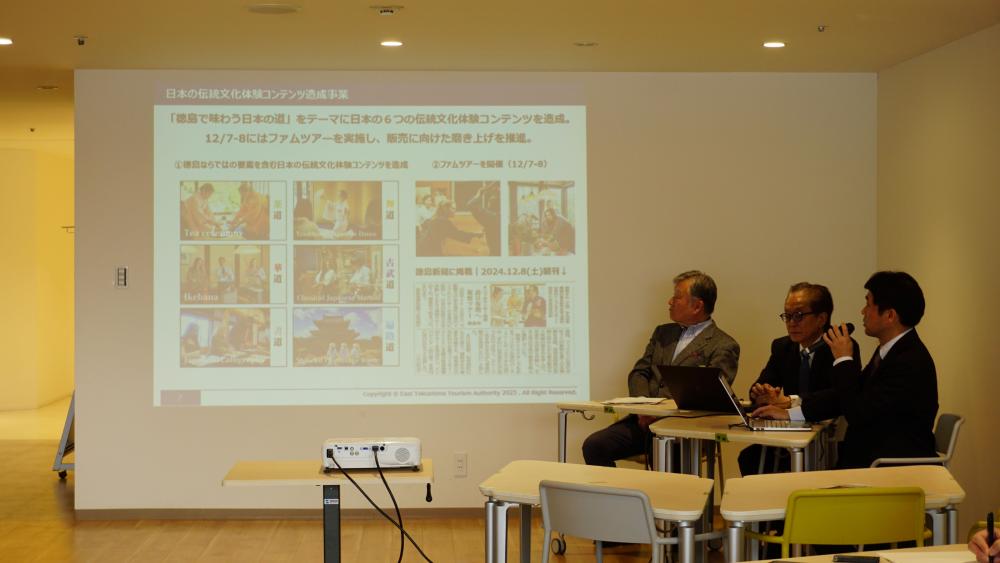 4月10日に、大阪・関西万開催の絶好の機会を活用して、徳島東部への誘客促進に向けた、イーストとくしまの各種取組みに関して、報道機関の方々を対象にした報告会を開催しました。