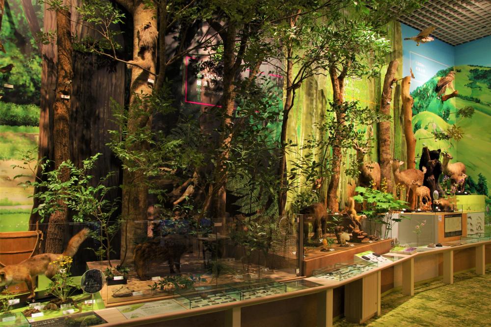 ここは山の生き物の展示。徳島県の大部分は森林で占められていて、そこで暮らす動物や昆虫、植物について知ることができます。