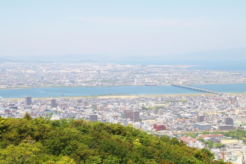 山頂からは、徳島の雄大なパノラマ。四国三郎・吉野川はもちろん、遠くは大鳴門橋と淡路島、天気がよければ紀伊半島を望むこともできます。