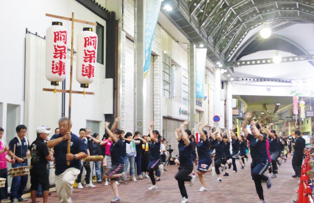 6月~7月の毎週金曜日(19:30~21:00ごろ)には、東新町アーケード コルネの泉広場で阿波おどりの三大主流のひとつである「阿呆連」が練習中。客席も設けられ、練習する様子を見ることができます。