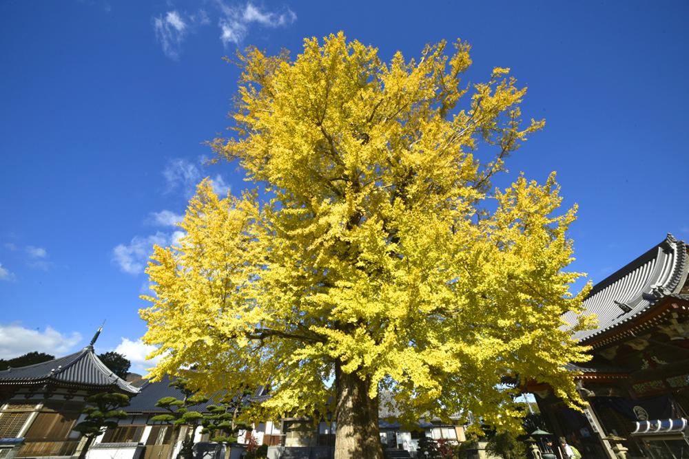 境内で一際目立つ大木は樹齢800年を越えるといわれるたらちね銀杏。