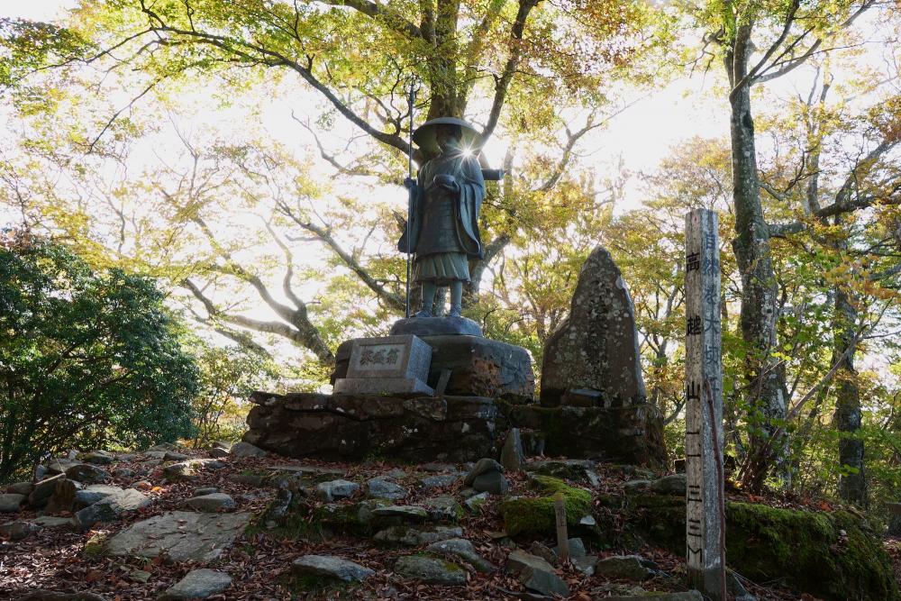 高越山で修行したと言われる空海の像が見えたら頂上です。
