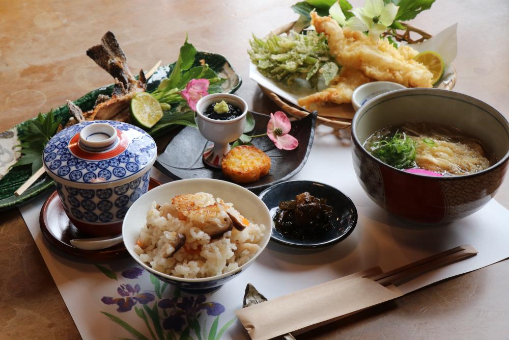 『観月茶屋』では、山田さんが山で採ってきた山菜やきのこ、川魚をはじめ、地元の食材にこだわり、四季折々の滋味を味わえる料理を提供。チェックインより早めに到着して、お茶をしてからキャンプを始める人や、翌日チェックアウトして昼食を食べてかえるお客さんも多いと山田さんは話します。山田さんが料理人を志したのは、中学生のころ叔父さんに「この景色を見ながらうまいもんを食べられたなら最高やな」という言葉がきっかけなのだそう。