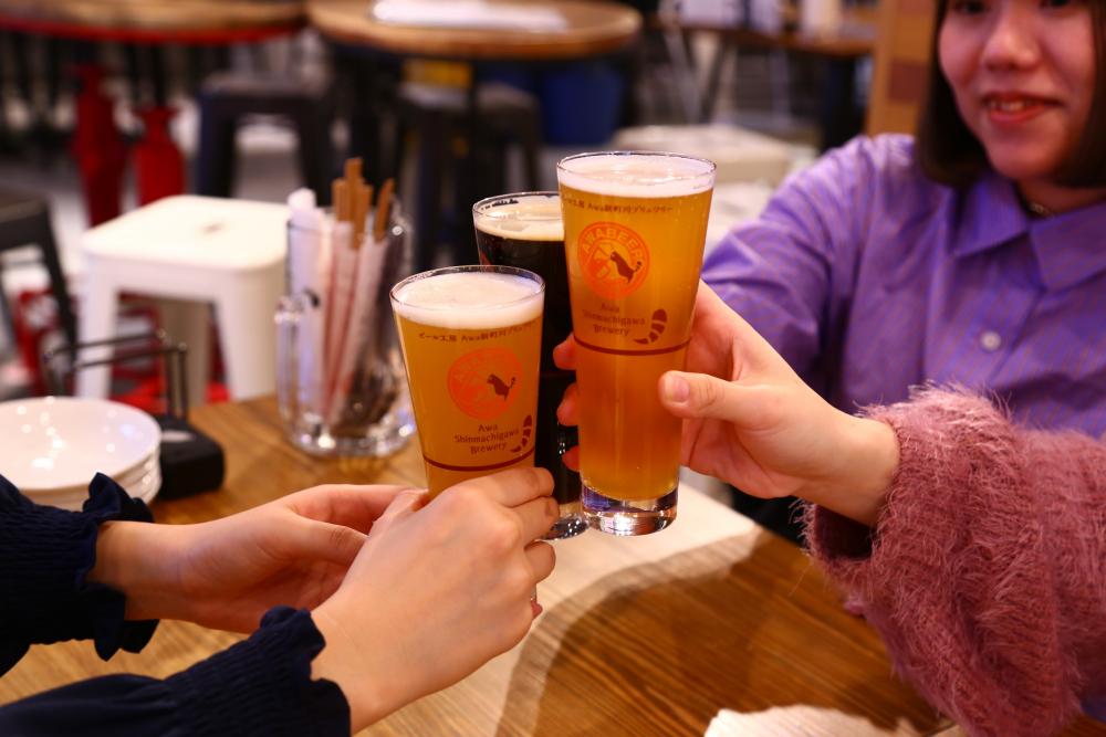 新町橋のたもとにある姉妹店『Awa新町川ブリュワリー』も、街の中心部を川が流れる、徳島ならではの景観を楽しめると観光客に人気のお店となっています。