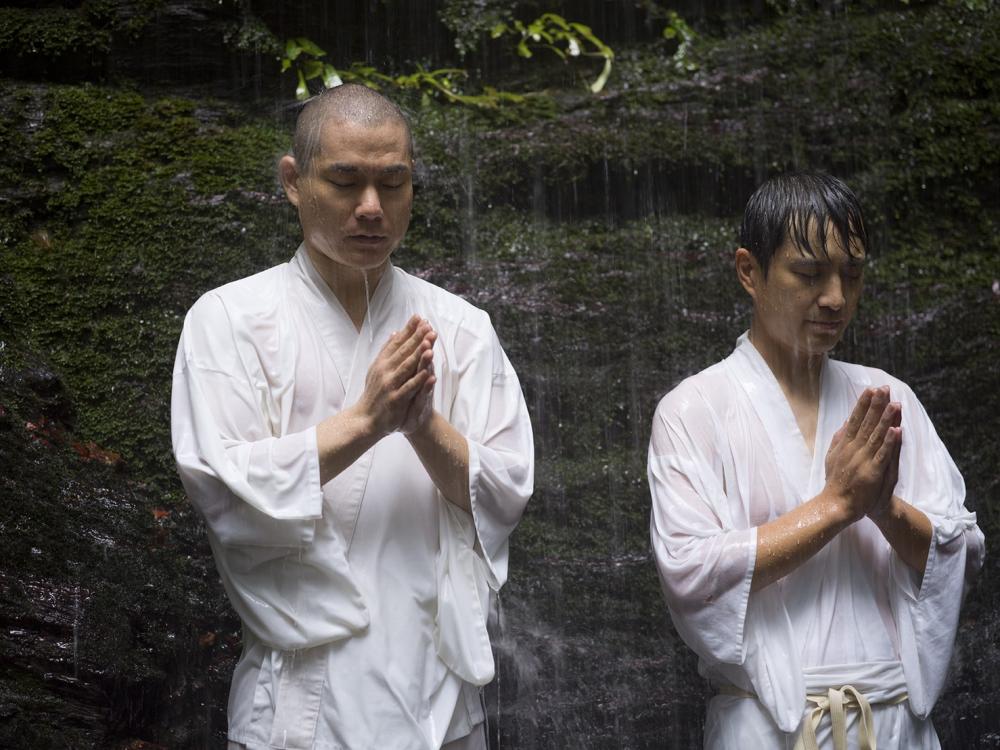 白装束に着替えて、滝の横にある不動明王を祀ったお堂で祈祷をささげ、